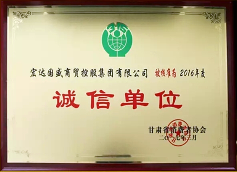 宏達國盛集團榮獲2016年度“誠信單位”殊榮