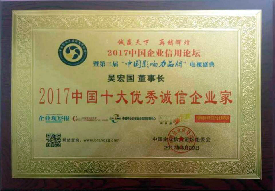 集團董事長吳宏國榮獲“2017中國十大優秀誠信企業家”榮譽
