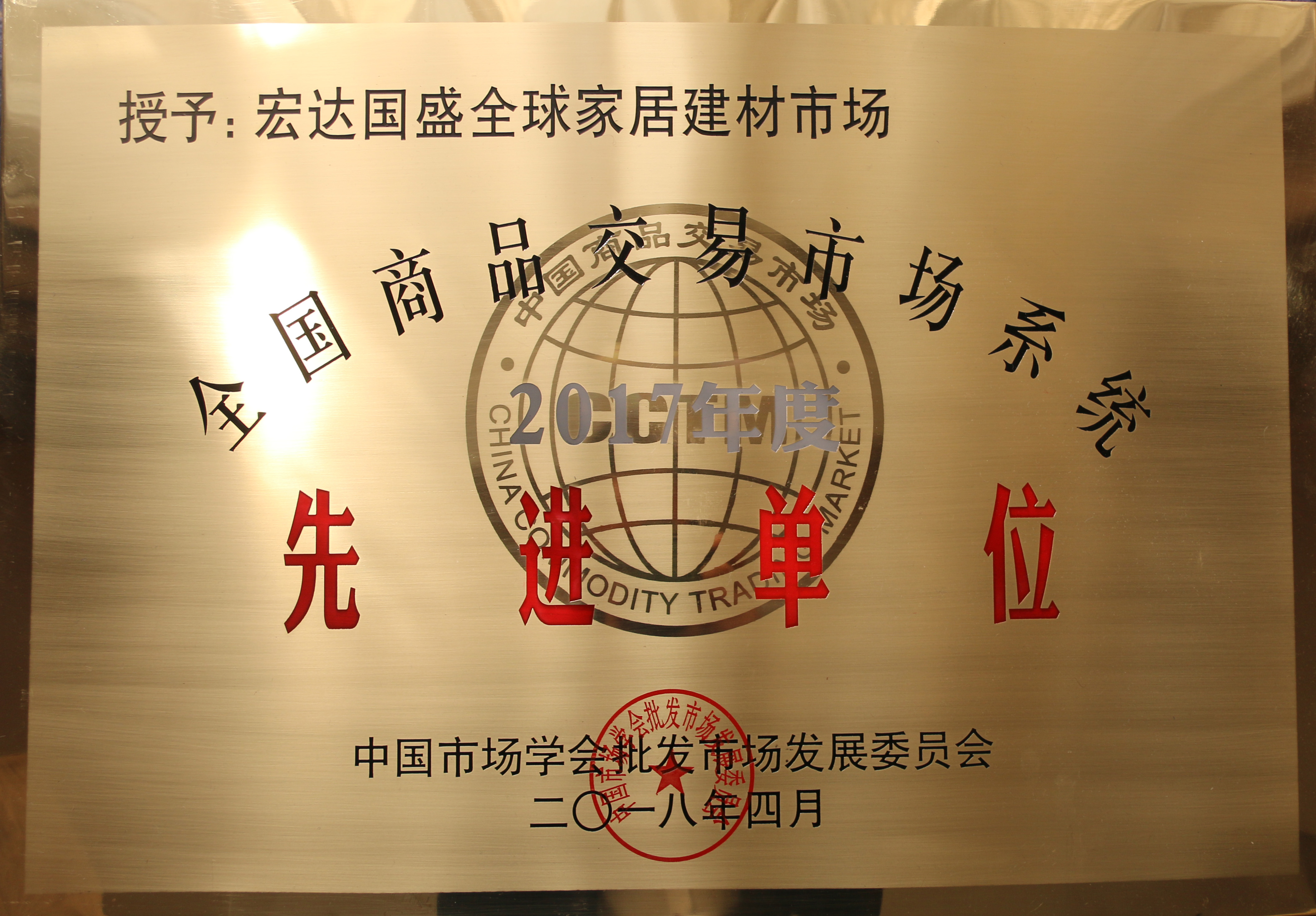 宏達(dá)國(guó)盛全球家居建材市場(chǎng)榮獲“2017年全國(guó)商品交易市場(chǎng)系統(tǒng)先進(jìn)單位”榮譽(yù)稱(chēng)號(hào)